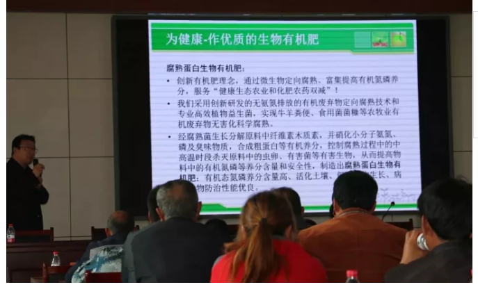會上,天津坤禾首席技術(shù)專家趙鋼勇老師為大家做了“微生物肥料在修復(fù)和改善土壤中的作用”的專題講解,深入淺出地闡述了微生物肥料對修復(fù)和改善土壤肥力、養(yǎng)分結(jié)構(gòu),構(gòu)建作物健康生長土壤微生態(tài)環(huán)境的技術(shù)原理,介紹了坤禾獨(dú)創(chuàng)的“腐熟蛋白生物有機(jī)肥”具有的安全性、營養(yǎng)性、有效性的產(chǎn)品機(jī)理,講解了國家倡導(dǎo)優(yōu)質(zhì)有機(jī)肥替代化肥對農(nóng)業(yè)生態(tài)改善的重大意義。
