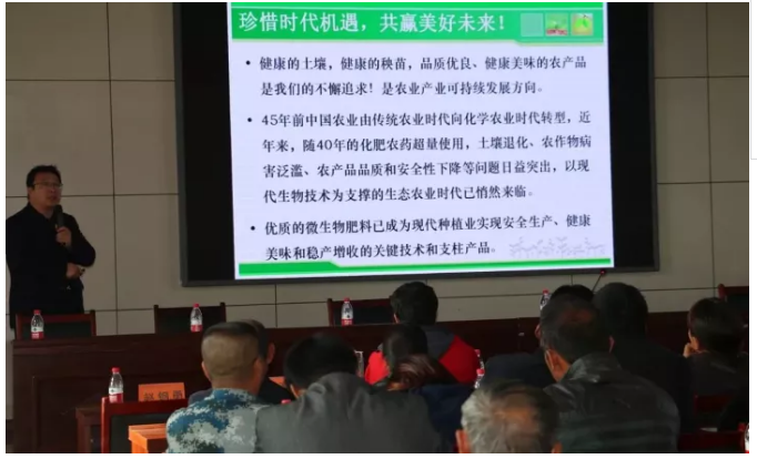 天津坤禾客戶服務(wù)負(fù)責(zé)人張暉經(jīng)理還向大家講解了微生物肥料在當(dāng)?shù)厥卟松系膽?yīng)用效果和售后服務(wù)的措施。