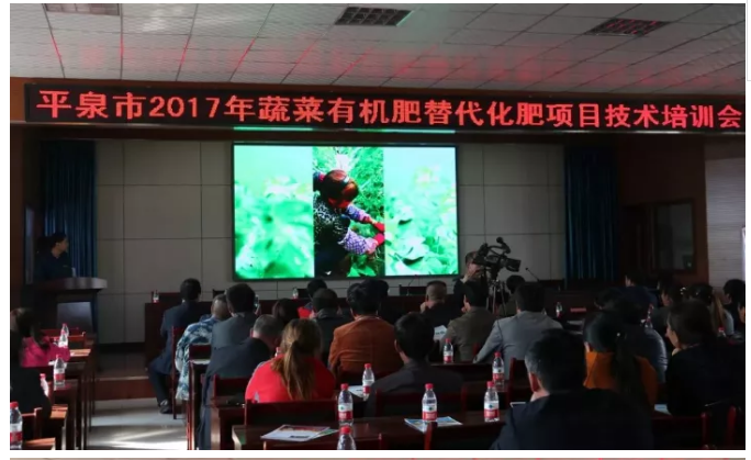 為進(jìn)一步提升該政府采購項(xiàng)目的落地效果,2017年10月20日,由平泉市農(nóng)牧局主辦,承德沃土有機(jī)肥料有限公司承辦,天津坤禾生物科技股份有限公司、河北省生物工程技術(shù)研究中心、河北省農(nóng)科院植物保護(hù)研究所協(xié)辦的“平泉市2017年蔬菜有機(jī)肥替代化肥項(xiàng)目技術(shù)培訓(xùn)會”在承德平泉市順利舉行。平泉市農(nóng)牧局有關(guān)領(lǐng)導(dǎo),天津坤禾、承德沃土負(fù)責(zé)人、技術(shù)專家和相關(guān)科研機(jī)構(gòu)專家會同當(dāng)?shù)氐乃氖寮沂卟藢I(yè)合作社負(fù)責(zé)人、技術(shù)員以及典型種植大戶百余人參加了此次項(xiàng)目培訓(xùn)會。