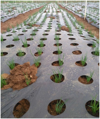 2018年7月16日至2018年9月10日的生長周期里,紅蔥種植戶楊老板在坤禾集團特派員的指導(dǎo)下,其紅蔥種植基地進行坤禾產(chǎn)品應(yīng)用示范,每畝按照80KG腐熟蛋白生物有機肥+40KG調(diào)酸補鈣農(nóng)用微生物菌劑+2KG農(nóng)益健100農(nóng)用微生物菌劑的用量,在耕地前將三個產(chǎn)品充分拌勻,均勻撒施到示范地塊,接著用耕地機進行耕地,然后理墑蓋膜進行播種。