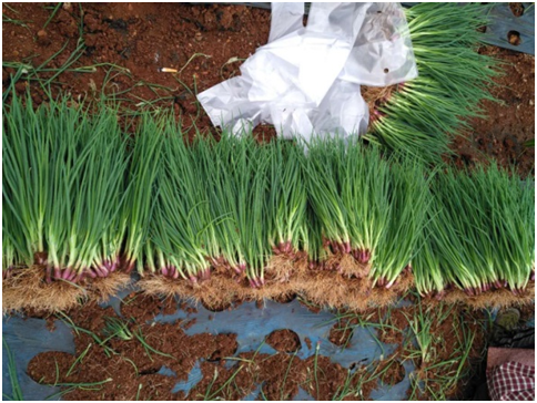歷經(jīng)54天,紅蔥示范田長勢良好,示范地塊植株整齊,大小均勻,根系發(fā)達并且旺盛,葉片顏色深,品相較好,通過統(tǒng)計植株高度平均在30-36cm,每棵紅蔥平均分蘗15個蔥頭左右,相比對比地塊平均多出4個蔥頭左右,畝產(chǎn)量2.3噸,相較于本地紅蔥同期產(chǎn)量要高出400-500KG!